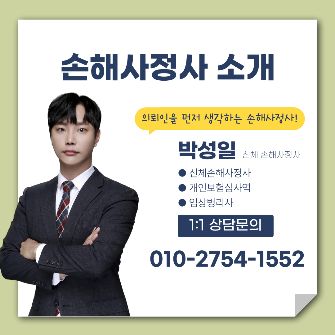 보상 전문가 손해사정사 박성일입니다.